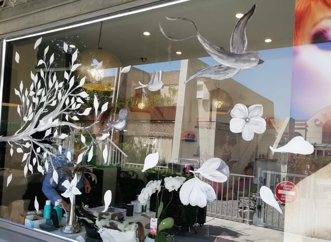 Je mets à votre disposition un art éphémère, afin d'embellir vos vitrines.Que ce soit pour des événements festifs, style Noël St Valentin Pâques, une période estivale ou saisonnière (vitrine de printemps, soldes), ou des manifestations événementielles, je vous propose de concevoir et de réaliser en peinture, vos décorations, et ainsi renouveler périodiquement l'ambiance de votre boutique, afin d'animer, et par conséquent, attirer le regard d'une clientèle plus large, tout en se différenciant et se personnalisant de la concurrence.Je travaille à l'inspiration, selon la thématique demandée, et l'échange en amont que nous aurons abordé .Laissez vous tenter en osant l'originalité, afin de vous démarquer, en étant innovant et inventif.